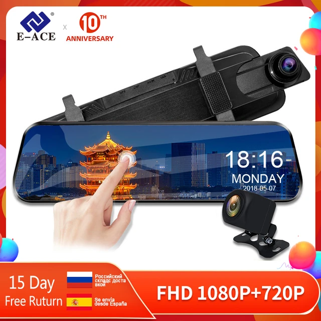 E-ACE 10" Touch Car Dvr Mirror Dash Camera FHD 1080P Video Recorder Car Camera Stream RearView Mirror With Rear View Camera